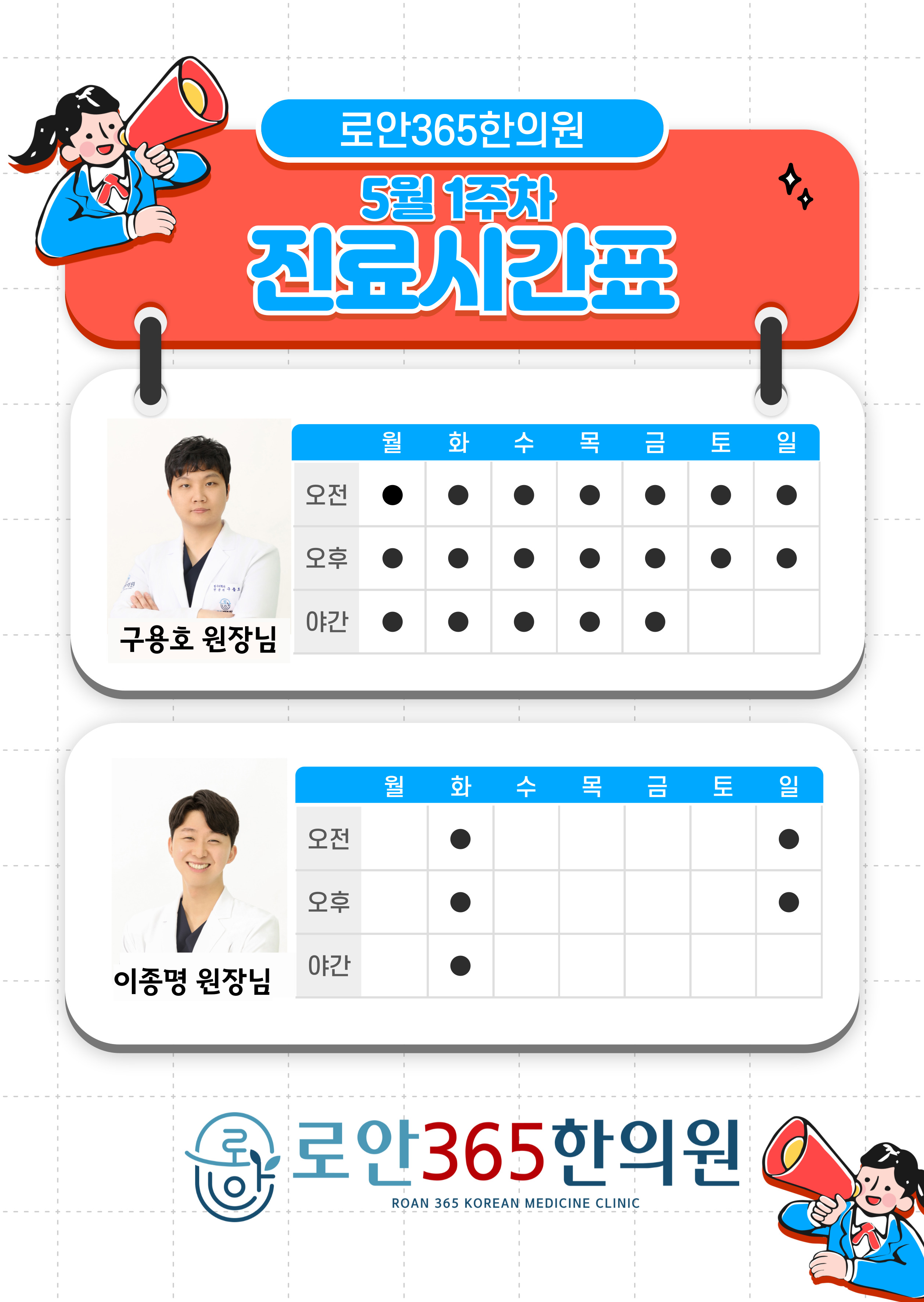 로안한의원 대전점 5월 1주차 진료시간표 안내