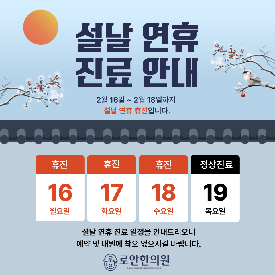 로안한의원 세종점 설날 명절 연휴 진료 안내