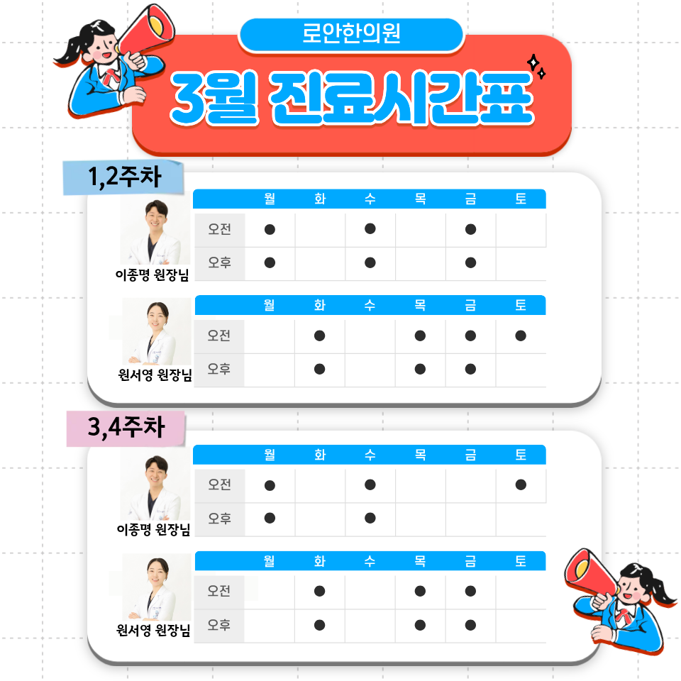 로안한의원 세종점 3월 진료시간표 안내